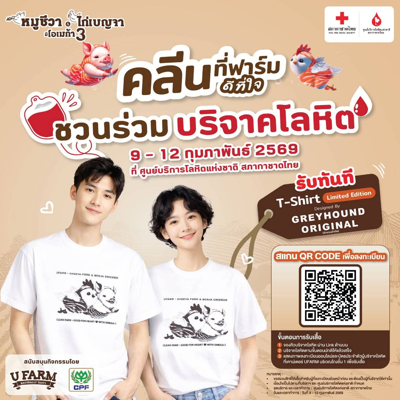 - สงวนสิทธิ์เฉพาะผู้ที่ลงทะเบียนสำเร็จและบริจาคโลหิตได้เท่านั้น