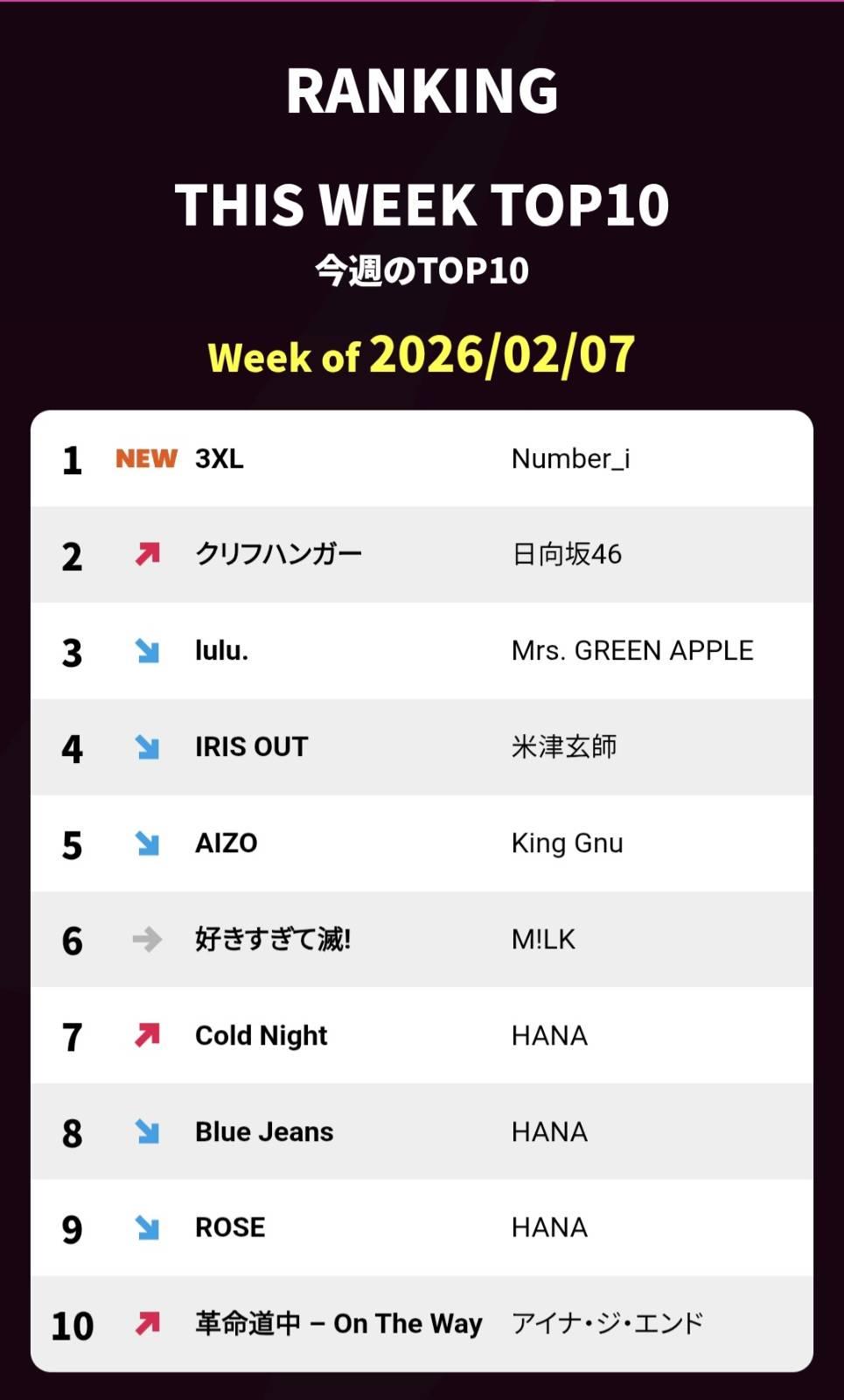 RANKING THIS WEEK TOP10 Week of 2026/01/31