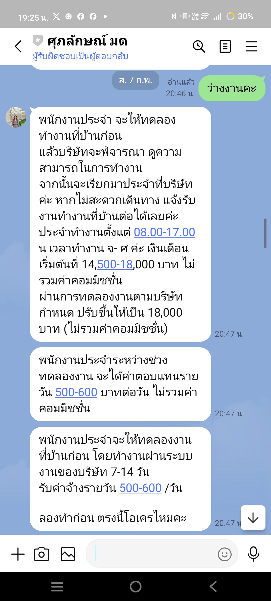 อยากถามว่า พอดีหางานในเฟสแล้วเจองานนี้ก็เลยแอดไลน์ไปสอบถามงาน อยากให้พี่ๆช่วยดูให้หน่อยว่า อันนี้ใช่มิจฉาชีพรึป่าวคะ
