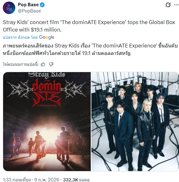 🔥 Stray Kids อิทธิพล “The dominATE Experience”ขึ้นอันดับ 1 BoxOffice ทั่วโลกด้วยรายได้ 19.1 ล้านดอลลาร์หรือ 600ล้านบาท