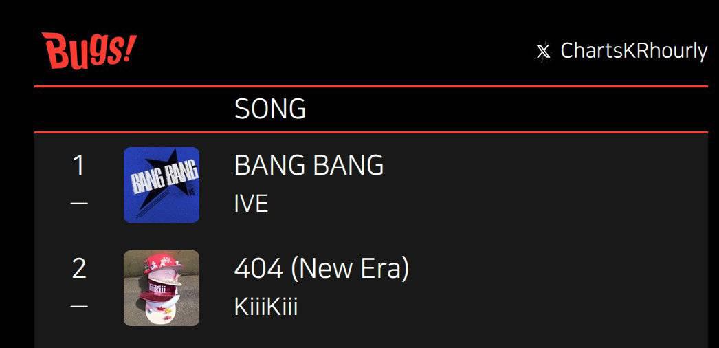 '404 (New Era)' - 11PM KST : #2 Bugs (=) #2 FLO (=) #2 MelOn (+1) *new peak* #8 Genie (=) สาวๆตอนรู้ว่าตัวเองขึ้นที่2 ใครจะไปคิดว่าเบอร์ใหญ่ที่ให้น้องกีกี้มาชนคือ พี่สาวตัวเอง 🥲