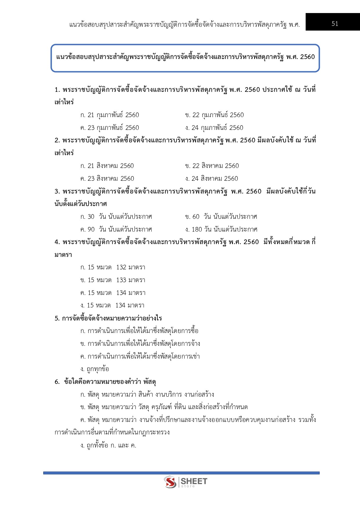 - แนวข้อสอบสรุปสาระสำคัญพระราชบัญญัติการจัดซื้อจัดจ้างและการบริหารพัสดุภาครัฐ พ.ศ. 2560
