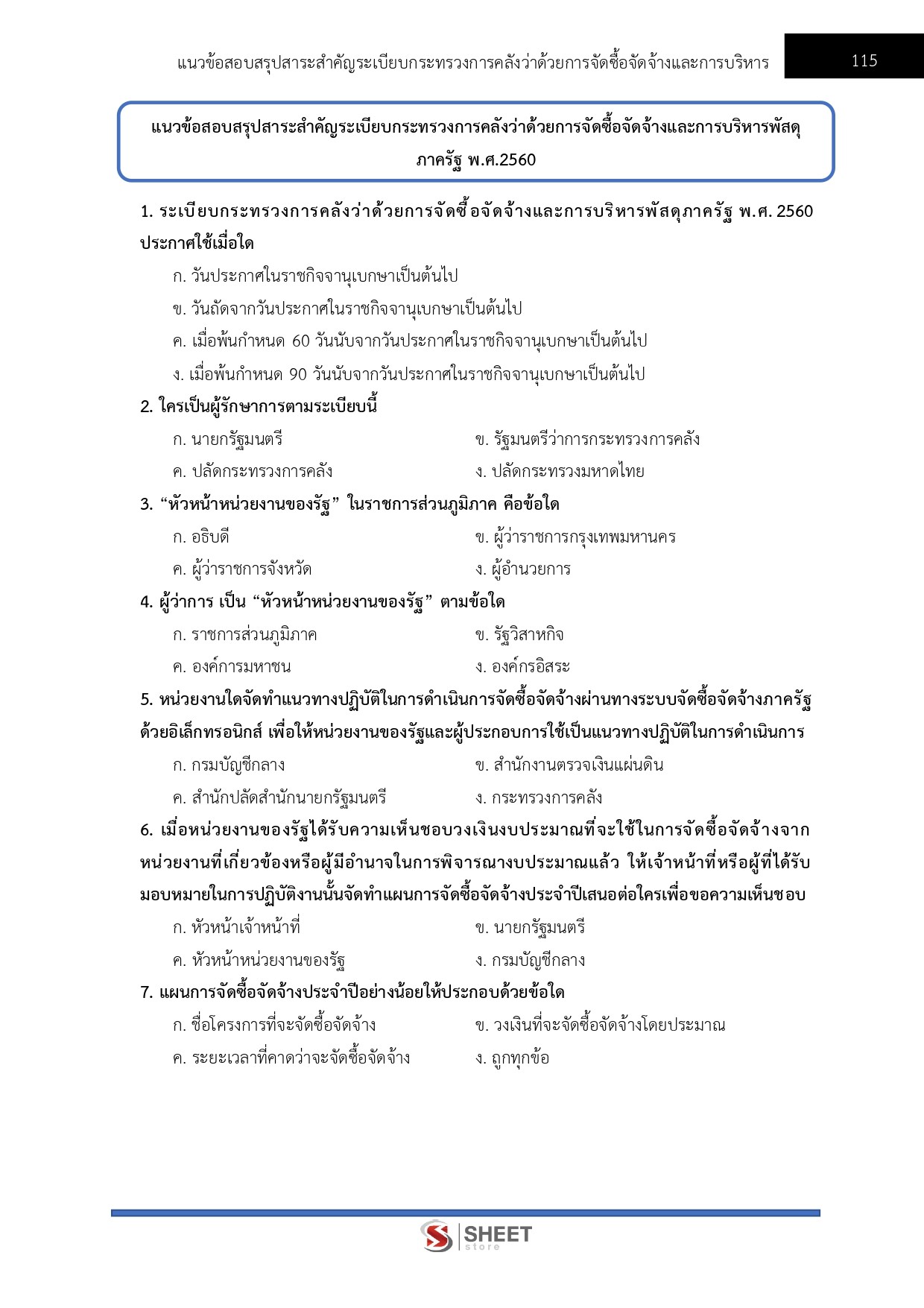 - แนวข้อสอบสรุปสาระสำคัญระเบียบกระทรวงการคลังว่าด้วยการจัดซื้อจัดจ้างและการบริหารพัสดุภาครัฐ พ.ศ. 2560