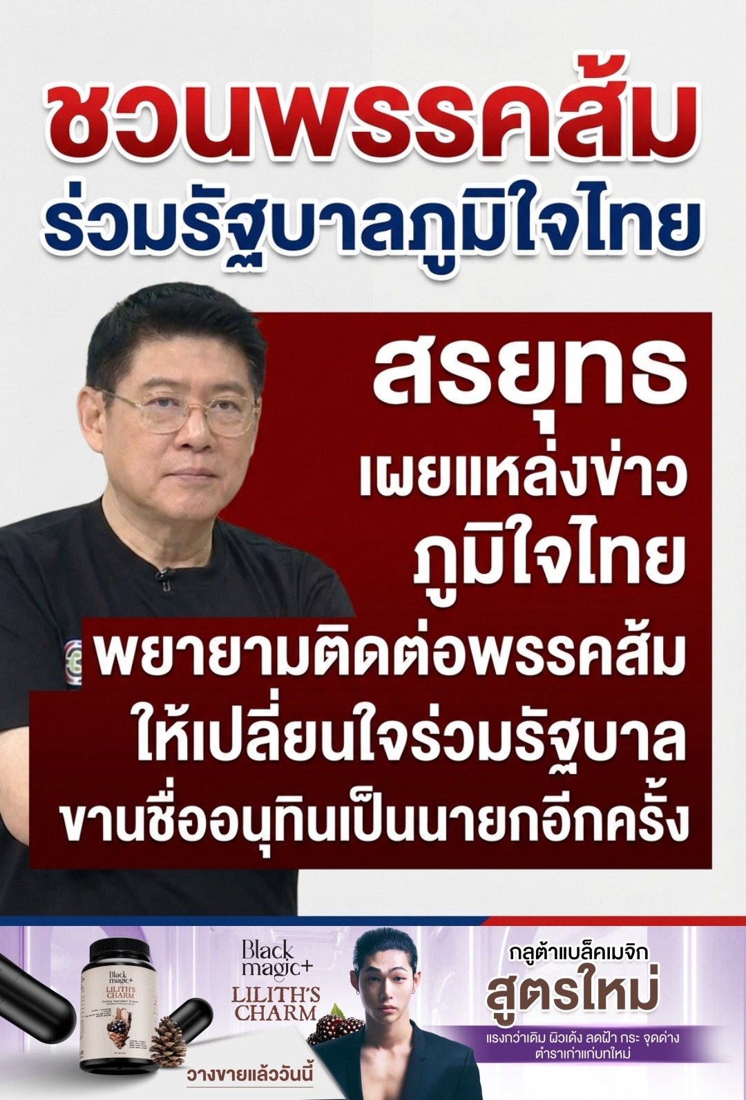 สรยุทธ เผยแหล่งข่าวลือหนาหู 'ภูมิใจไทย' เดินเกมทาบ 'พรรคส้ม' ร่วมรัฐบาล หวังดัน 'เสี่ยหนู อนุทิน' นั่งเก้าอี้นายกฯ อีกครั้ง