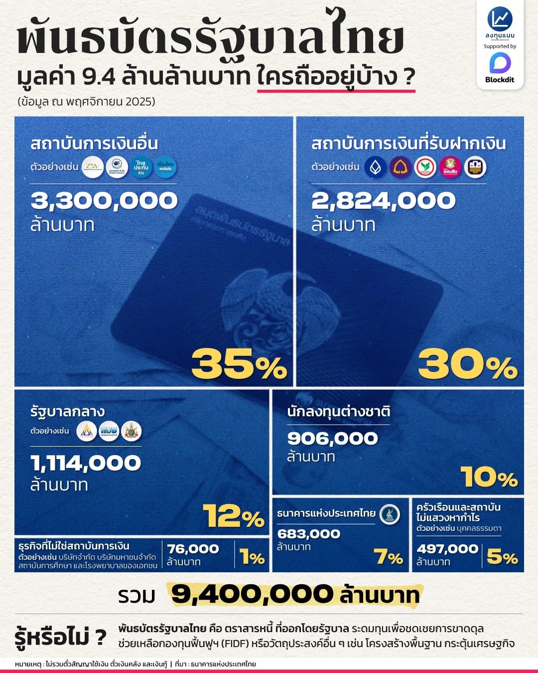 พันธบัตรรัฐบาลไทย มูลค่า 9.4 ล้านล้านบาท ใครถืออยู่บ้าง ?