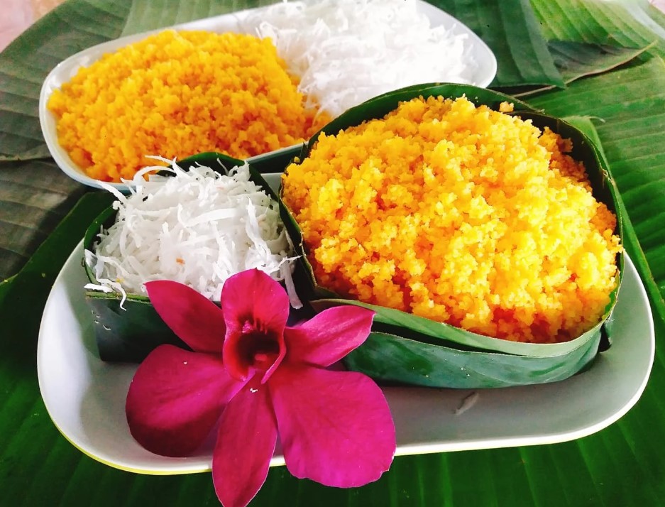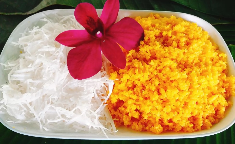 4 ตักใส่จานโรยด้วมะพร้าวขูดคลุกเกลือ