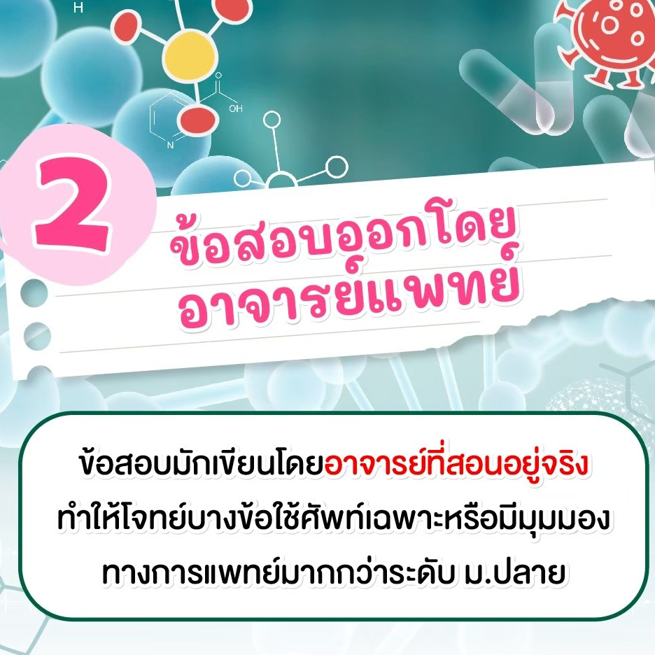 - ฝึกทำข้อสอบเก่า + แนวข้อสอบแพทย์