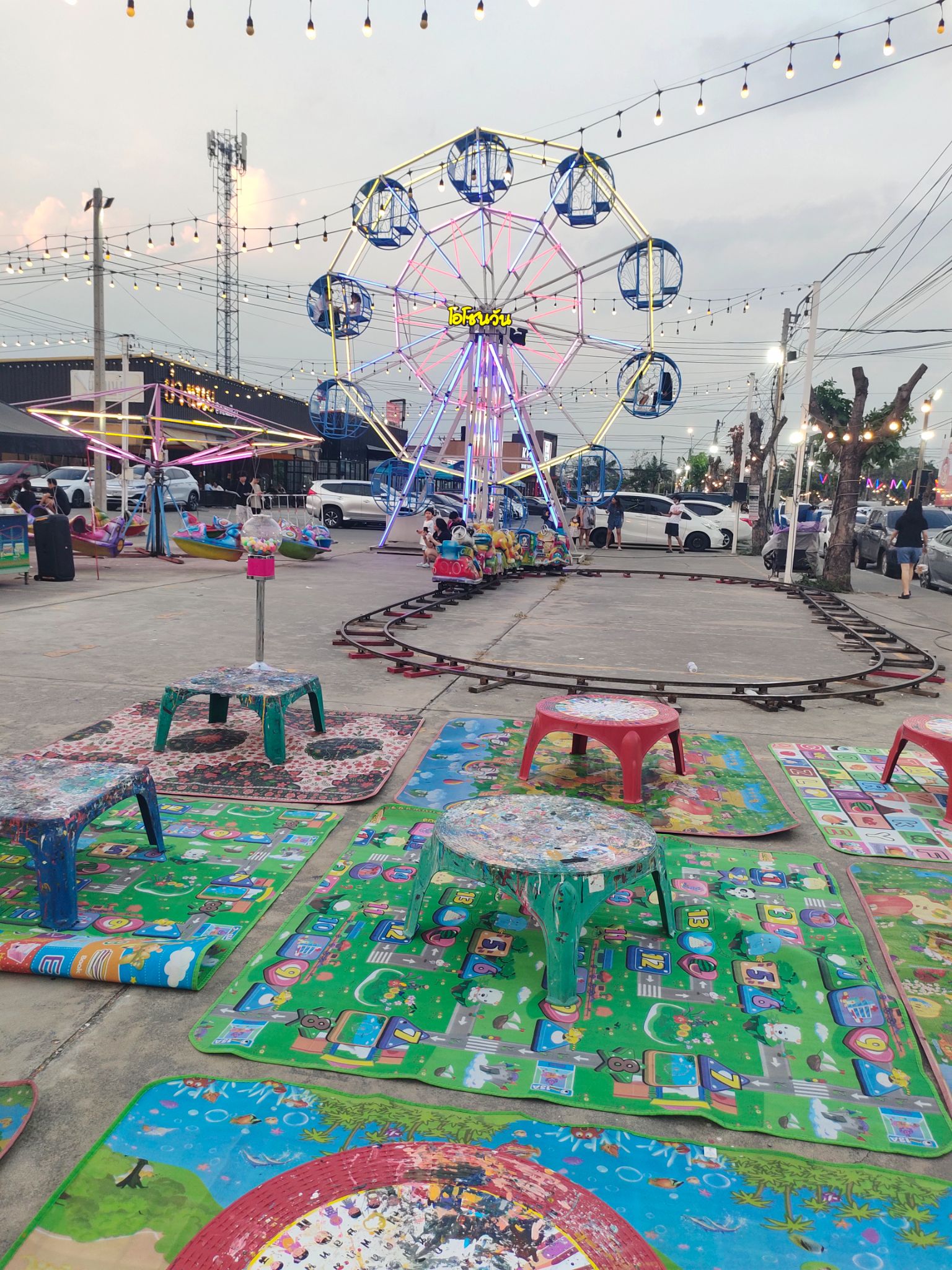 👉🏻 นอกจากนี้ ยังมีโซนพื้นที่ขายเสื้อผ้ามือสอง 👚 และสวนสนุกขนาดเล็กที่มีทั้งชิงช้า 🎡 เทมโพลีน 🤸🏻♂️ รถไฟคุณหนู 🚂 เครื่องบินเหาะ 🚁 และมุมระบายสี 🖼️ สำหรับน้องๆนู๋ๆ 🖌️🎨 กันอีกด้วยนะคะ 👉🏻 เราก็เลยเก็บภาพบรรยากาศมาให้ชมกันคะ 💋⭐👍🏻😬
