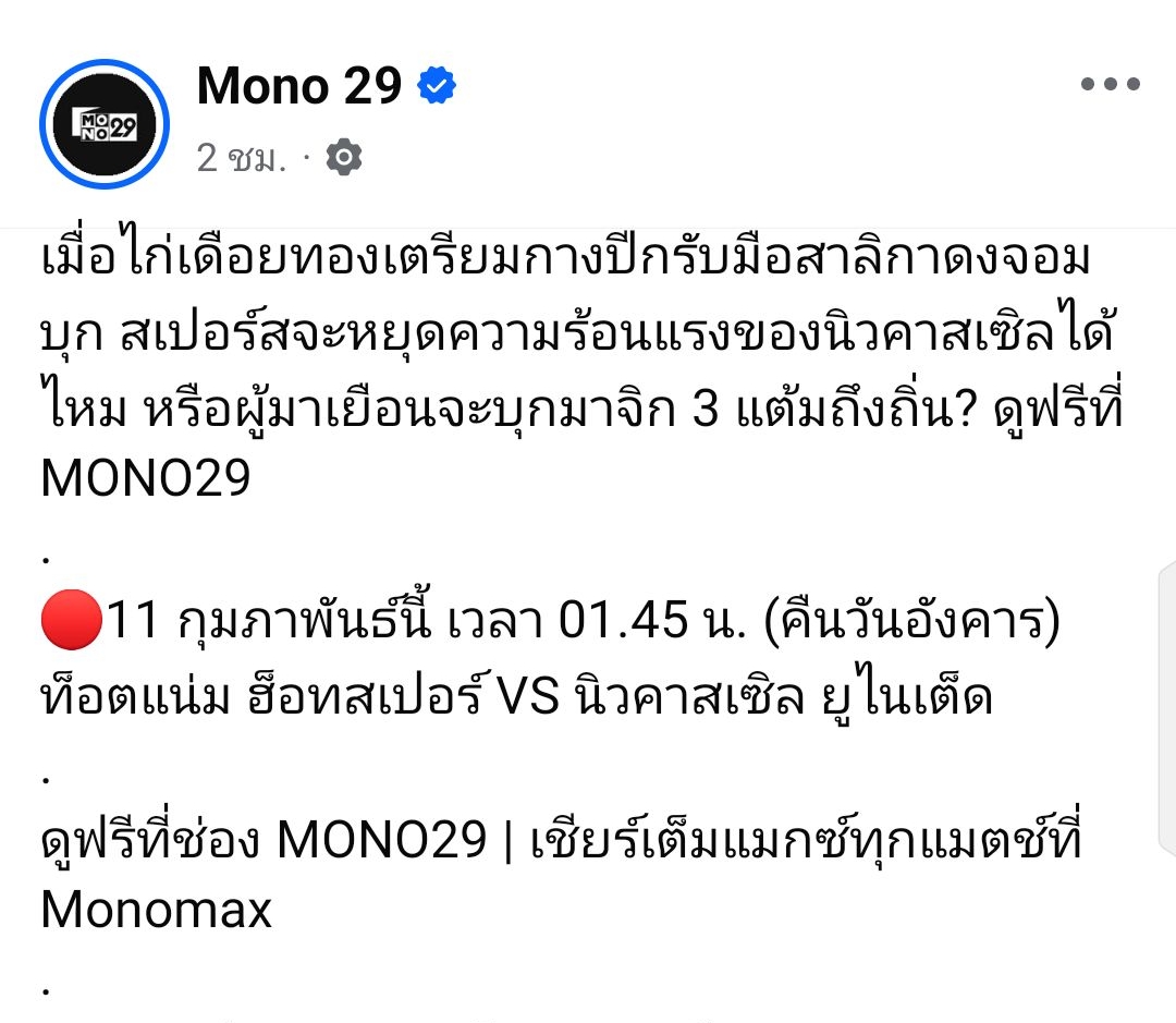 📺 #MONO29 ⚽🏴 พรีเมียร์ ลีก 2025/26 แมตช์ที่ 26 🗓️ วันพุธ ที่ 11 กุมภาพันธ์ 2569 (คืนวันอังคาร) 🔴