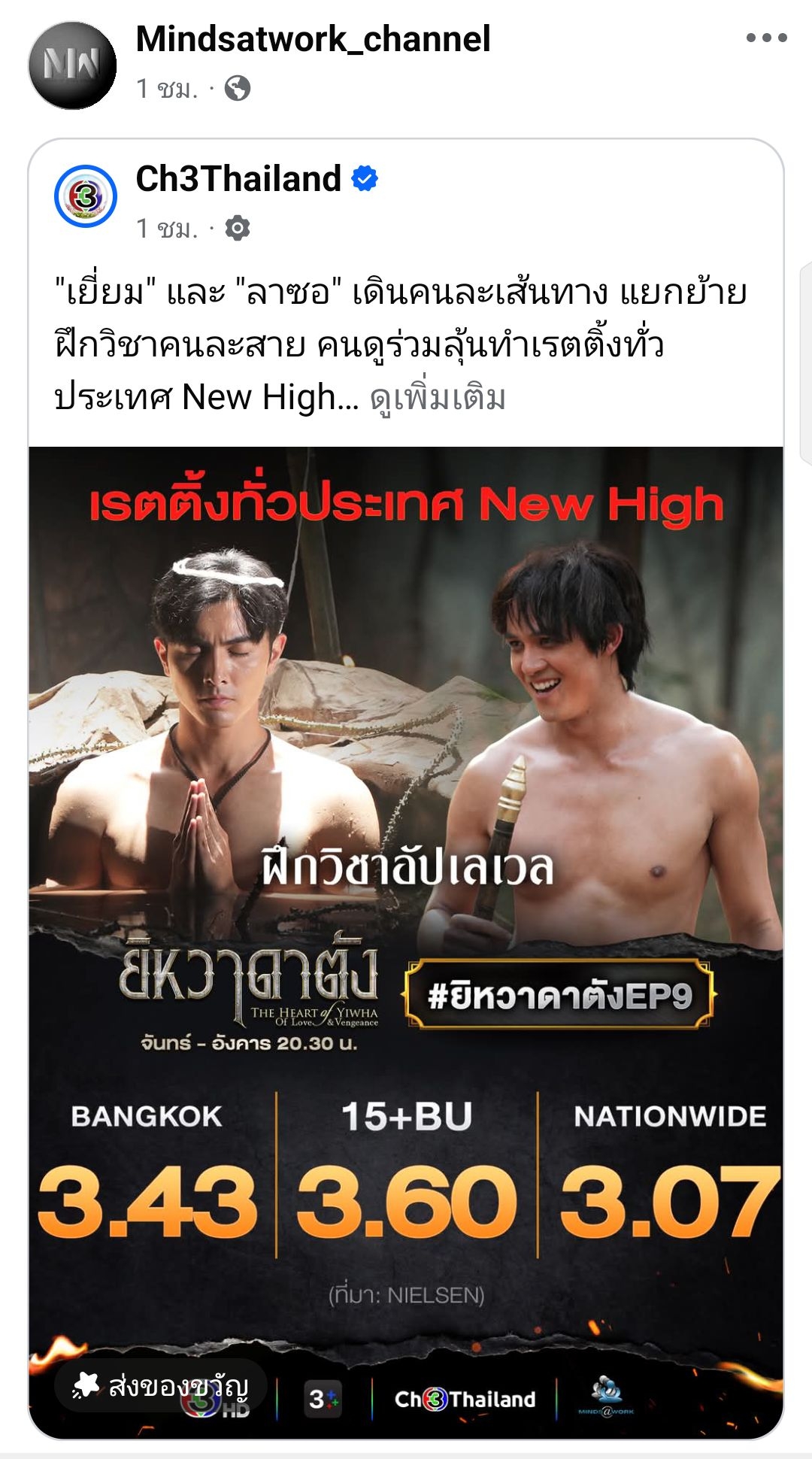 "ยิหวาดาตัง" เรื่องราวเข้มข้นขึ้นเรื่อยๆ ทำเรตติ้ง New High ทุกพื้นที่ ชีวิตที่พลิกผันของ "เยี่ยม-ยิหวา-ลาซอ" จะเป็นยังไงต่อไป ต้องติดตาม ห้ามพลาด! . #ยิหวาดาตัง #TheHeartofYiwha ว