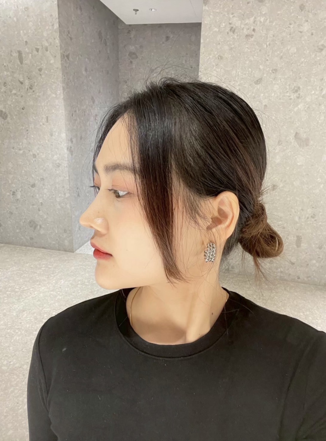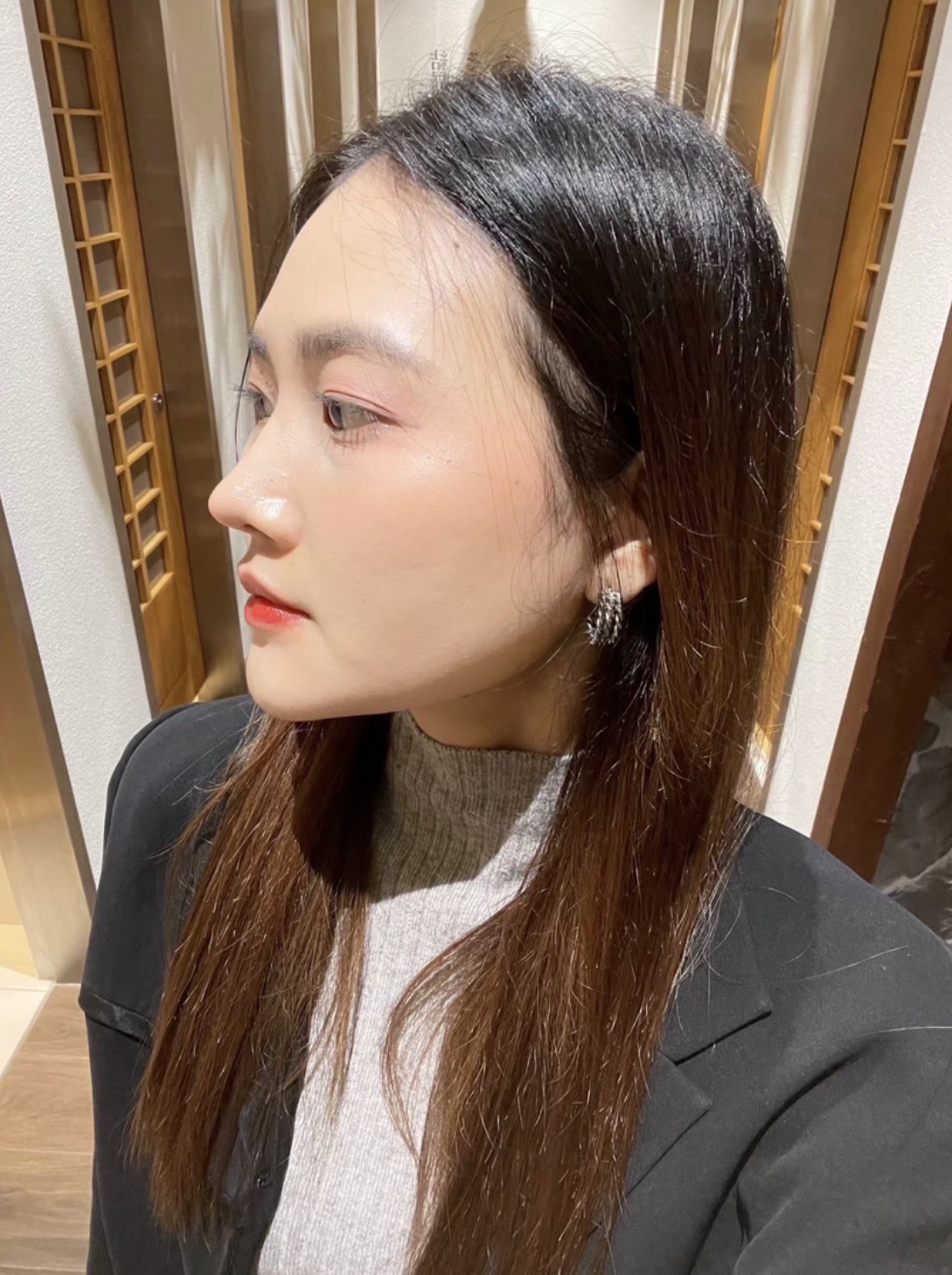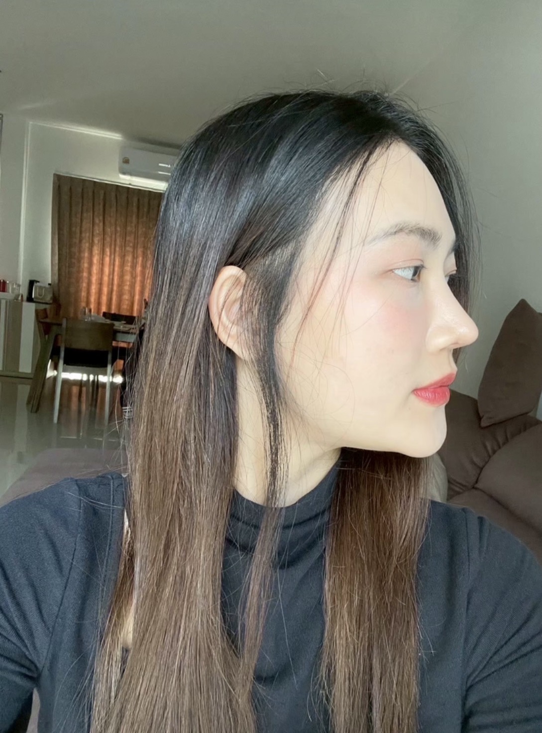 สภาพก่อนแก้ค่ะ จะเห็นว่าทรงแข็ง ปลายไหล และสันดูไม่ค่อยรับกับหน้าเท่าไหร่