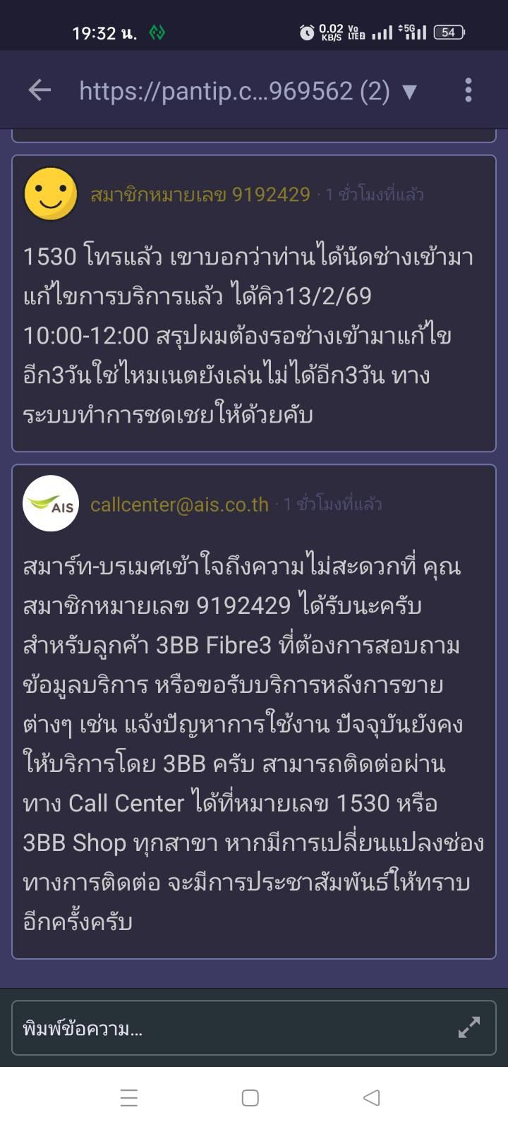คิดผิดที่ติดตั้ง ais fiber บริการแก้ไขทั้งช้าทั้งขอไปที....รอๆๆๆๆวิศวกรโทรเข้ามาสอบถาม