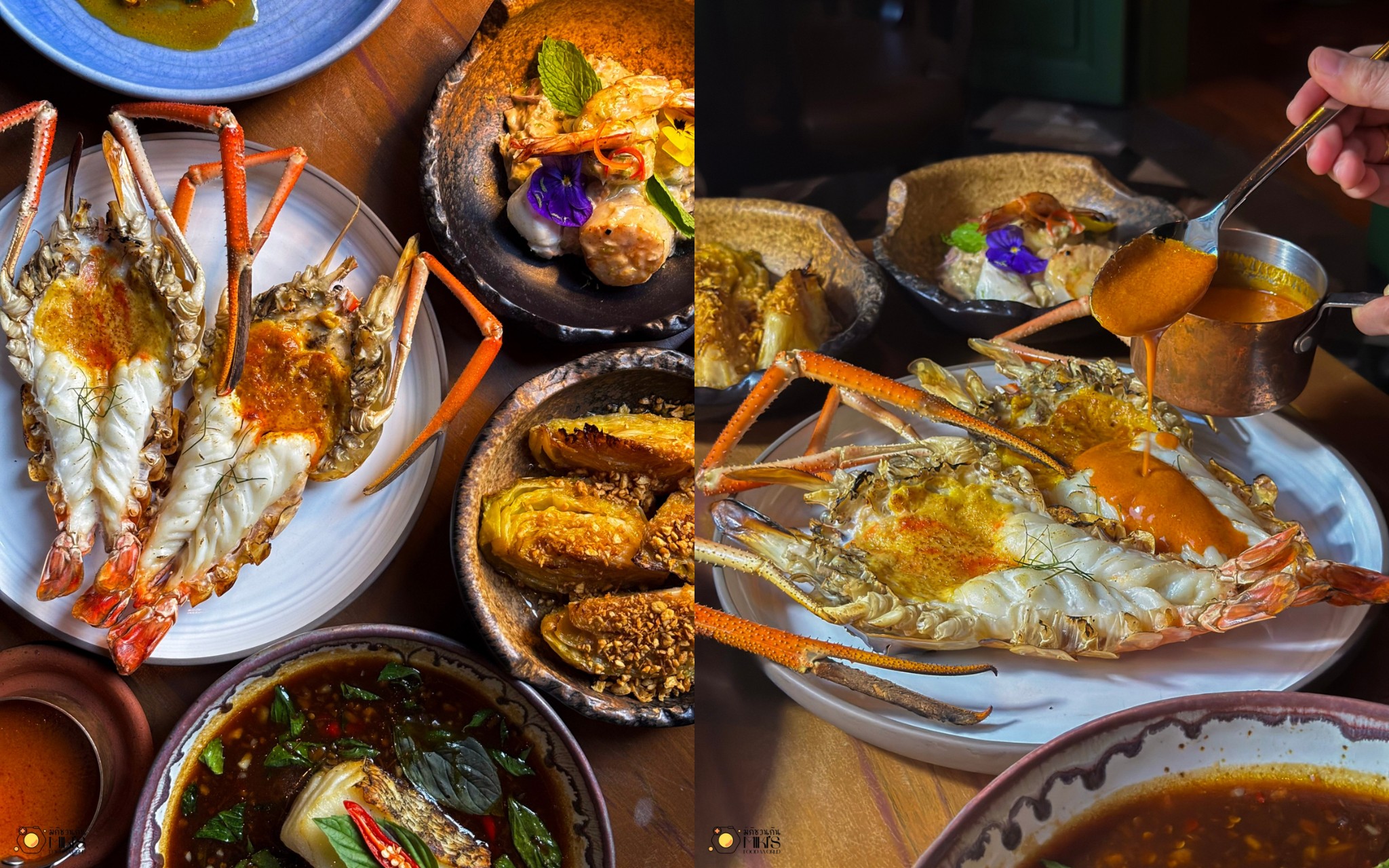 Choo-Chee Goong Mae Nam (1,550) กุ้งแม่น้ำตัวยักษ์ย่างจนหอม มาพร้อมมันกุ้งเยิ้มๆ ราดด้วยซอสฉู่ฉี่รสเข้มข้น กลมกล่อม เนื้อกุ้งเด้งหวานสู้ฟัน ถ้าได้ทานคู่กับข้าวสวยร้อนๆ คือที่สุด