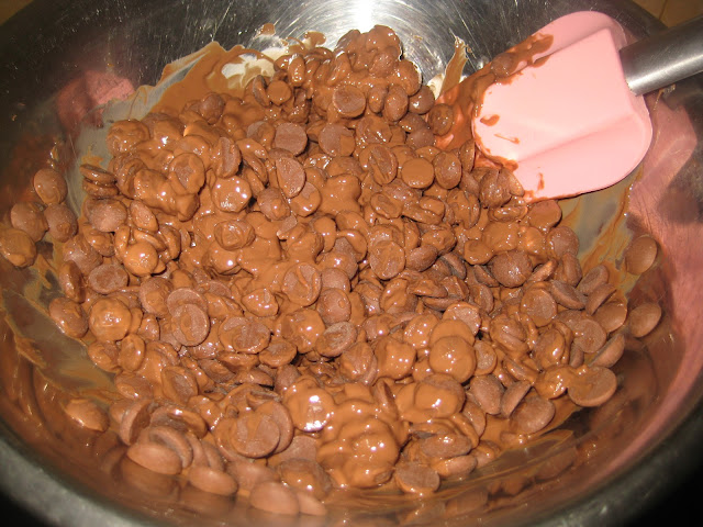 ใช้พายซิลิโคนค่อยๆ คนจนช็อกโกแลตจนละลายดี