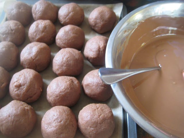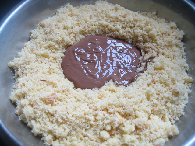 นำเค้กที่ผสมช็อกโกแลตเรียบร้อยแล้วมาปั้นเป็นก้อนกลมๆขนาดตามชอบ นำไปพักไว้ในตู้เย็น