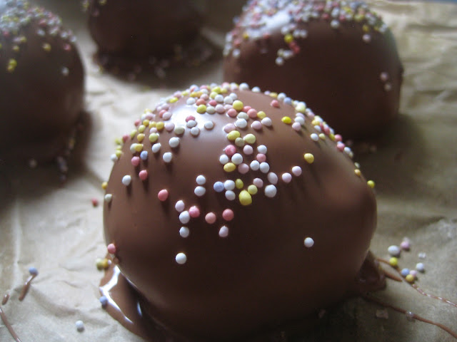 ตกแต่งด้วยเม็ดน้ำตาลสี ทิ้งไว้ให้ช็อกโกแลตเช็ตตัว