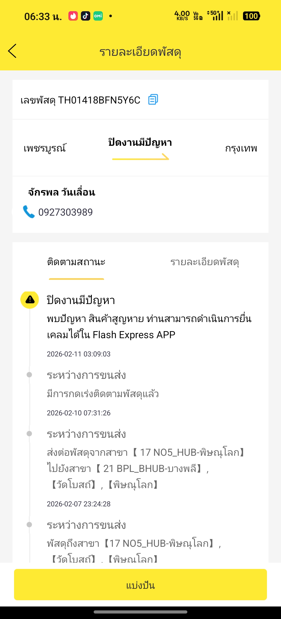 เมื่อวันที่ 1 กรกฎาคม2568 ไปส่งพัสดุที่ร้านรับส่งพัสดุกับทาง flash express แต่จนมาถึงวันที่6 กรกฎาคม 2 568 เลขพัสดุยังไม่เข้าระบบ ติดต่อใครได้บ้าง