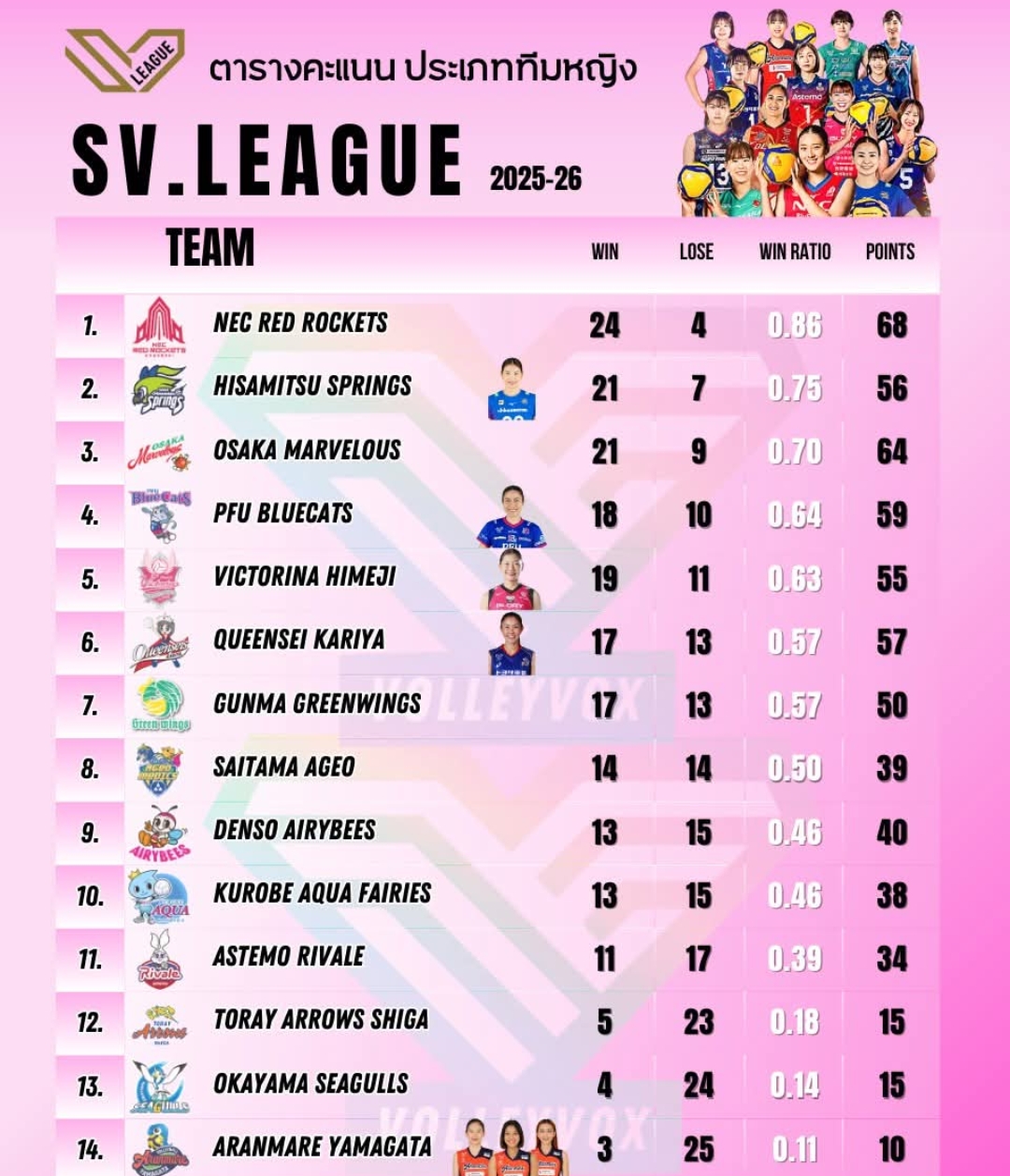สรุปผลการแข่ง SV.League Women's 2025-26 สัปดาห์ที่ 15 วันที่ 2