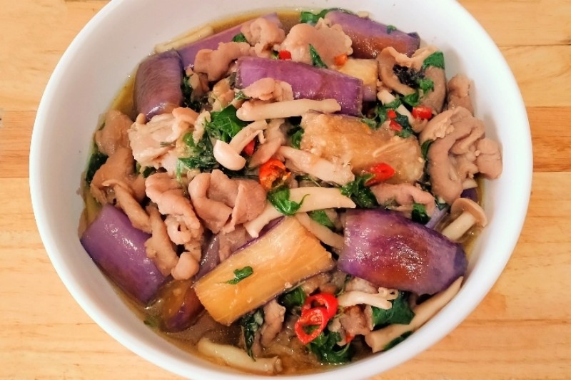 ผัดมะเขือม่วงหมูสันคอสไลด์ 🍛🍆🐷