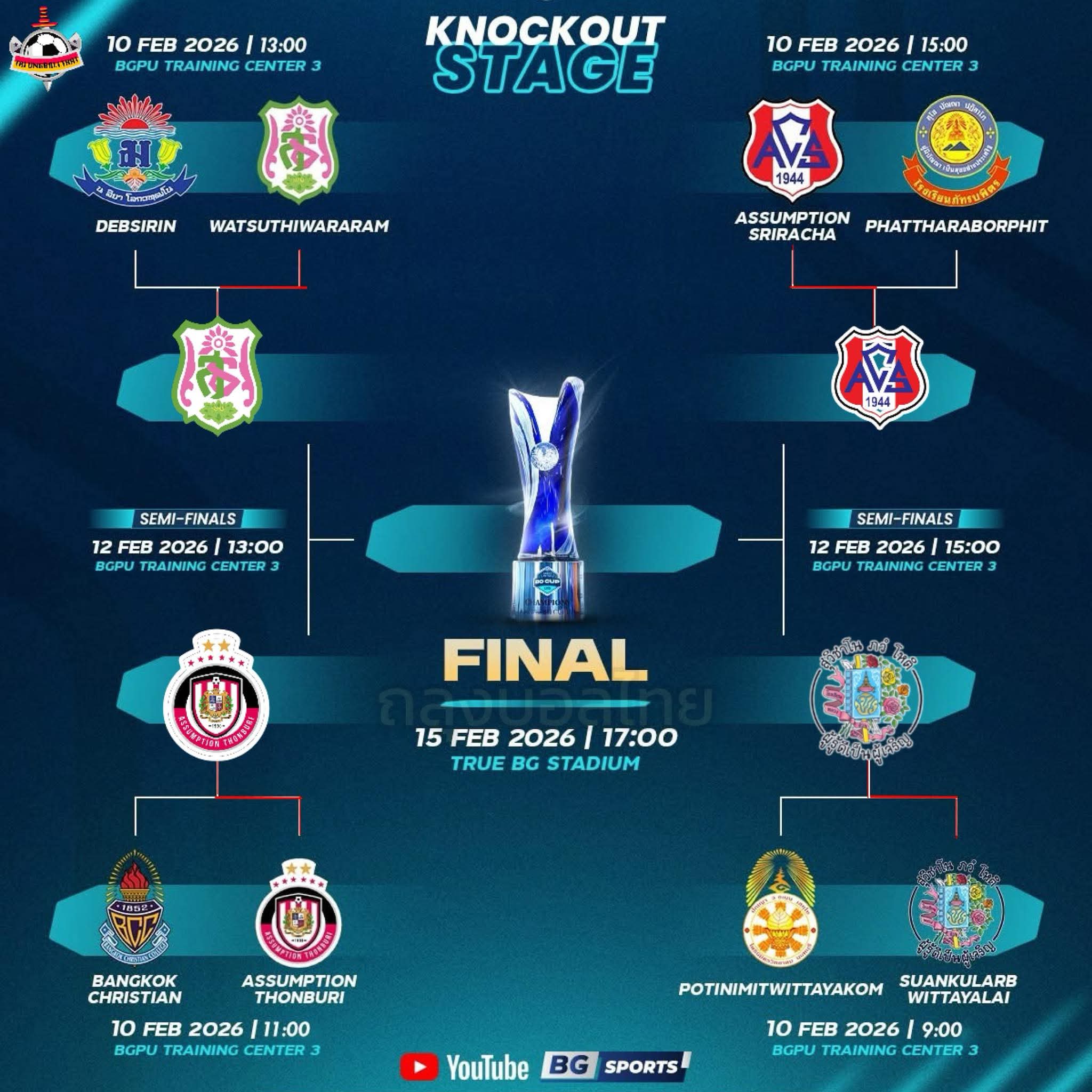 l AssetWise BG CUP U19 เตรียมพบนัดชิงชนะเลิศ 15 กุมภา 17.00 น. เตะรอบเดียว แพ้ คือ แพ้ ไม่เตะใหม่ !!!