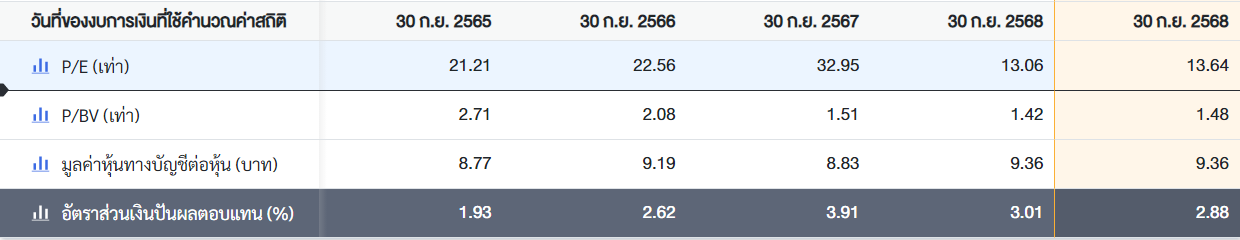 (หมายเหตุ: ตัวเลขบรรทัด "อัตราส่วนเงินปันผลตอบแทน (%) 2.88 ณ วันที่ 30 กย 68 ไม่อัพเดทแล้วค่ะ)