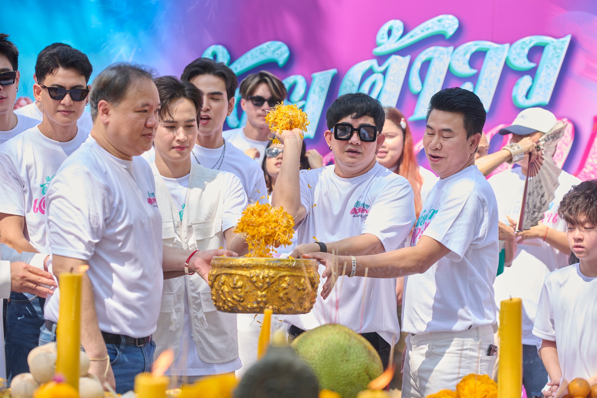 พร้อมด้วยทีมนักแสดงนำและนักแสดงสมทบมาร่วมบวงสรวงอย่างพร้อมเพรียง อาทิ ต้าวหยอง ระเบียบวาทะศิลป์, จูดี้ จารุกิตติ์, มะเดี่ยว อภิเชษฐ์, ม้าม่วง สิทธิเดช, โต้ส อัครัช, ใหม่ พัชรี, บอส มณเฑียร, พ่อเอ๊ะ ระเบียบวาทะศิลป์ และ น้องเมญ่า สร้างสีสันและความคึกคักให้กับงานเป็นอย่างมาก