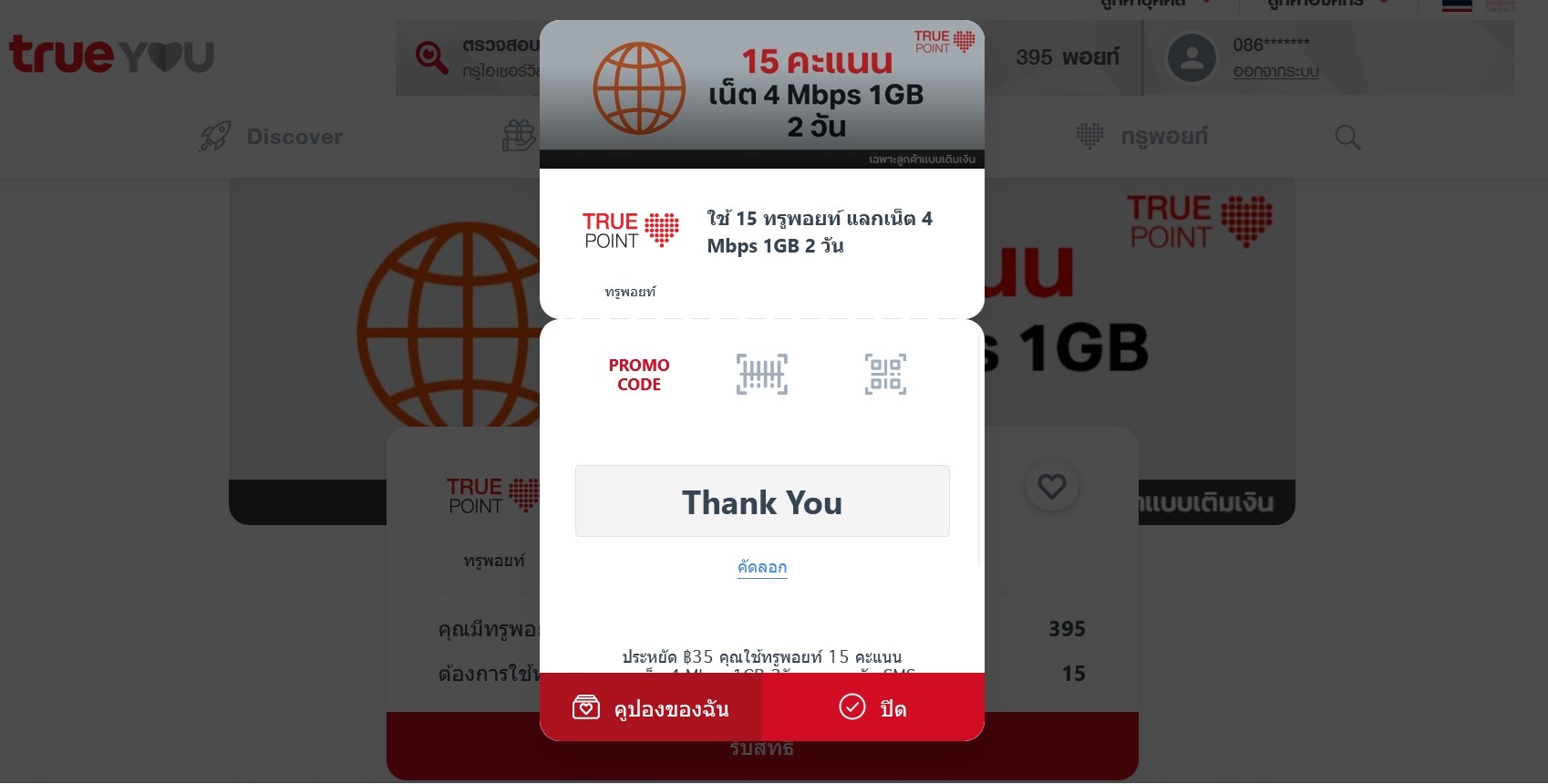 ใช้ 15แต้ม แลกเน็ต 4Mbps 2วัน แต่เสียถึง 30แต้ม