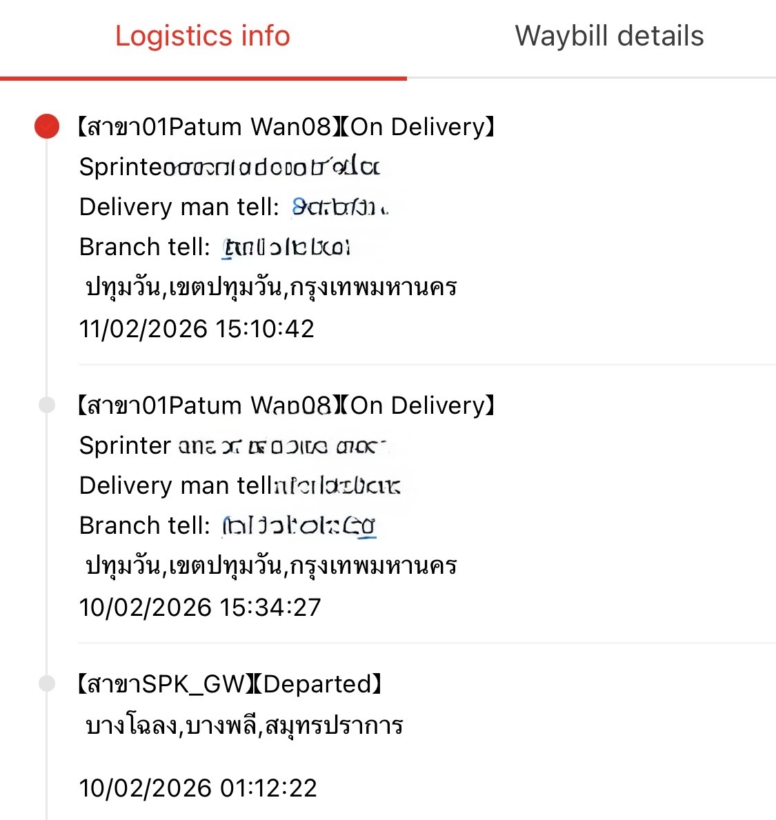 คราวนี้ของจากนนทบุรีมากรุงเทพ ไปดองของไว้อยู่บางพลี-บางแก้ว (ตอนแรกสถานะบอกว่าน้ำท่วมสูงในพื้นที่จัดส่ง??) ตามแล้วก็บอกแต่จะประสานเจ้าหน้าที่ให้ ไม่รู้ต้องรอถึงเมื่อไหร่ ผ่านมาอีกสองวันก็เหมือนเดิม ขอ