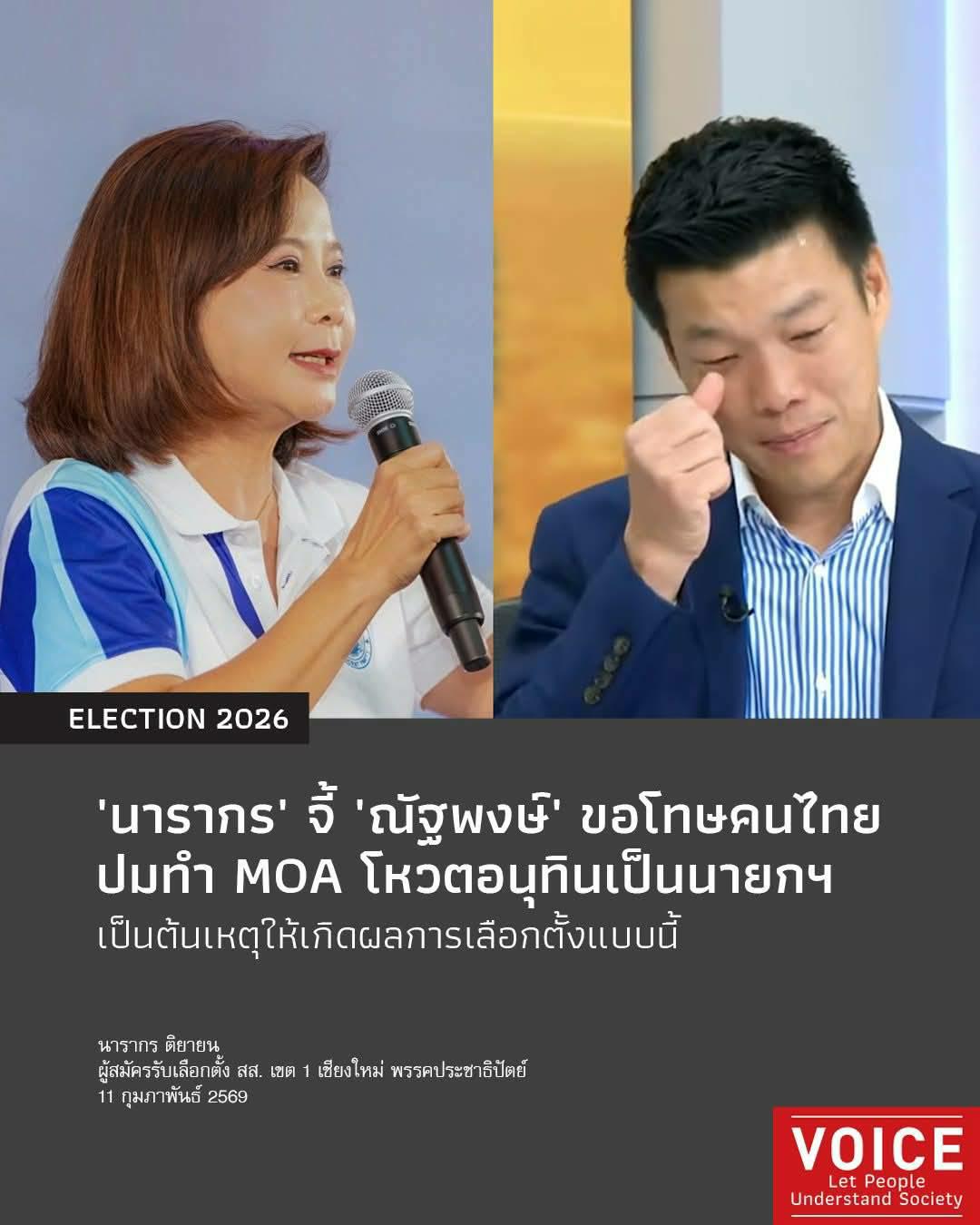 นารากร ติยายน ผู้สมัครรับเลือกตั้ง ส.ส. เขต 1 อำเภอเมืองเชียงใหม่ พรรคประชาธิปัตย์ โพสต์ข้อความผ่านสื่อโซเชียลมีเดียวันนี้ (11 กุมภาพันธ์ 2569) ว่า