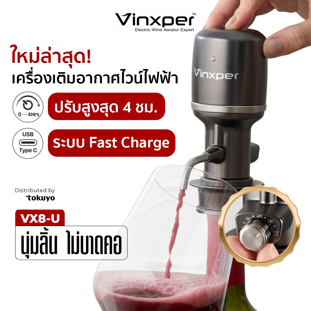 🍷⚡ เครื่องเติมอากาศไวน์ไฟฟ้า Vinxper VX8-U ปรับเวลา 0-240 นาที เทไว 6.5 วิ 🔌⏱️
