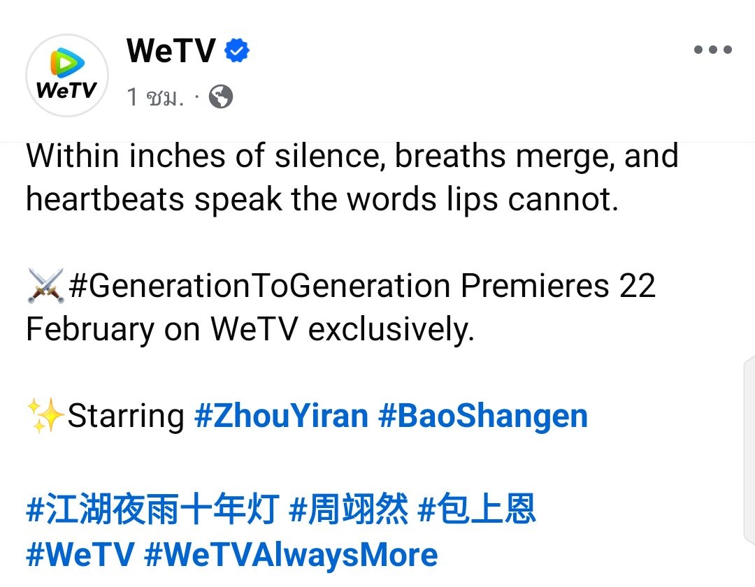 🆚 #GenerationToGeneration #江湖夜雨十年灯 🗓️ 22 กุมภาพันธ์ นี้ ที่ #WeTV 🔴