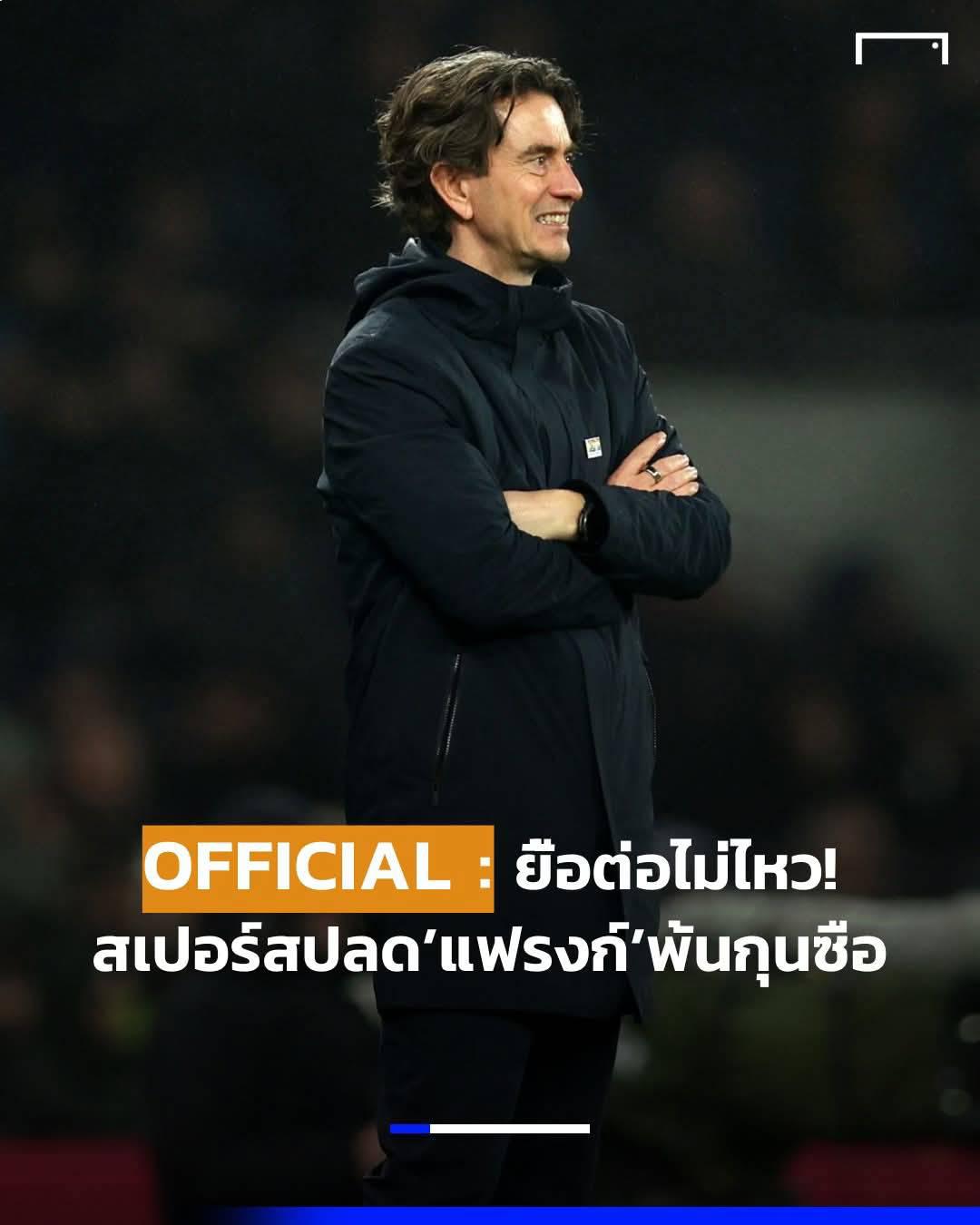 ไม่ได้ไปต่อ สเปอร์สปลด แฟรงก์ พ้นจากตำแหน่งกุนซือเซ่นผลงานอันสุดห่วย