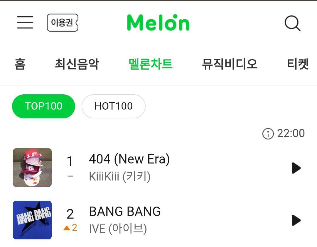 KiiiKiii <404 (New Era)> ขึ้นสู่อันดับที่ #1 บนชาร์ต MelOn Top100 ได้สำเร็จเป็นครั้งแรก.