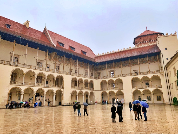 จากนั้นก็ไปชม Wawel Castle ซึ่งเป็นพระราชวังของกษัตริย์โปแลนด์ในอดีตตั้งแต่ศตวรรษที่ 15 ด้านในประกอบด้วยห้องโถงใหญ่ เฟอร์นิเจอร์โบราณ ภาพวาด และห้องต่างๆ ที่แสดงถึงความเป็นอยู่ของราชวงศ์ในสมัยก่อน