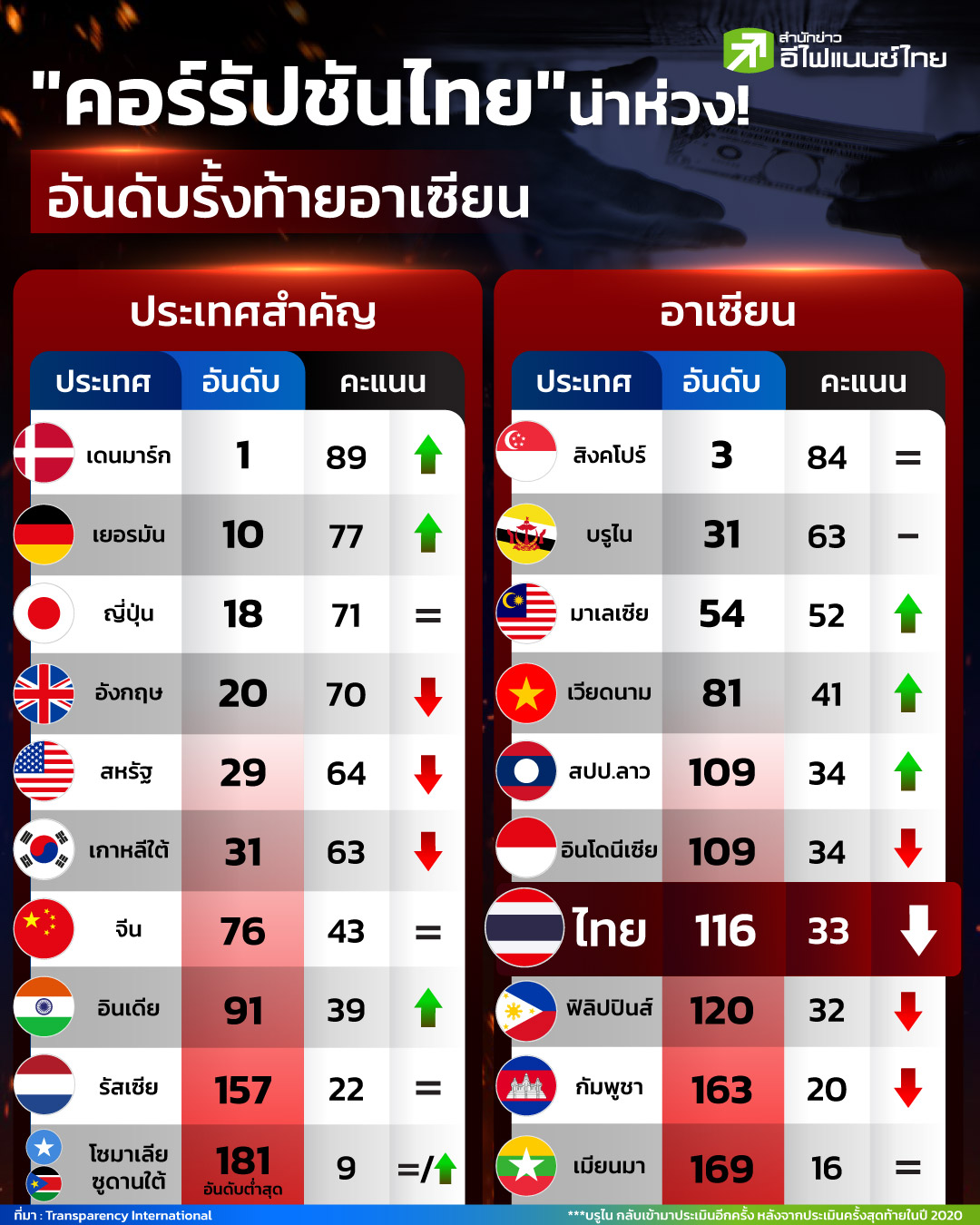 นี่อันดับคอร์รัปชันของไทยมาอยู่รั้งท้ายอาเซียนแล้วเหรอ?!