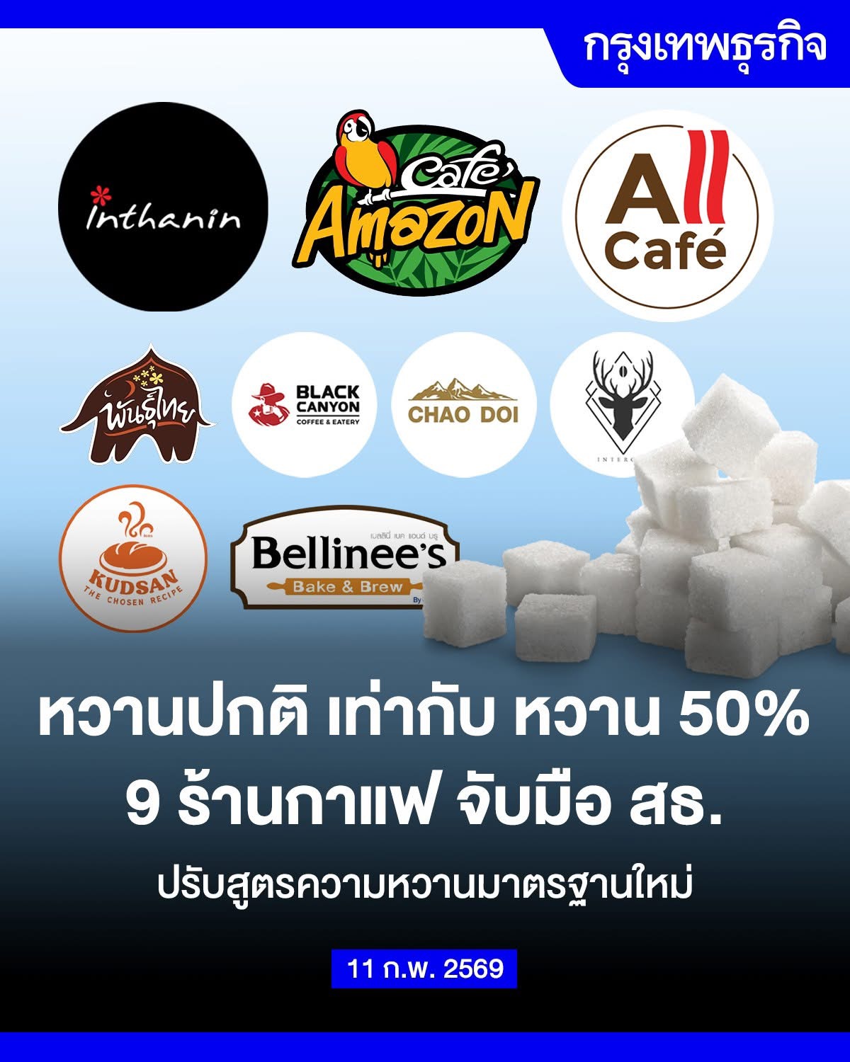 หวานปกติ เท่ากับ หวาน 50% 9 ร้านกาแฟ จับมือ สธ. ปรับสูตรความหวานมาตรฐานใหม่