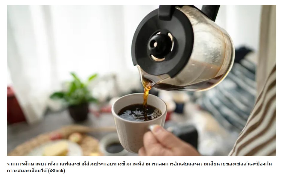 นักวิจัยชาวอเมริกันได้วิเคราะห์ข้อมูลกว่าสี่ทศวรรษจากแพทย์และพยาบาลกว่า 130,000 คน และพบว่า การดื่ม กาแฟและชา ที่มีคาเฟอีนในปริมาณปานกลาง สามารถลดความเสี่ยงต่อภาวะสมองเสื่อมได้ ตามรายงานของ SWNS