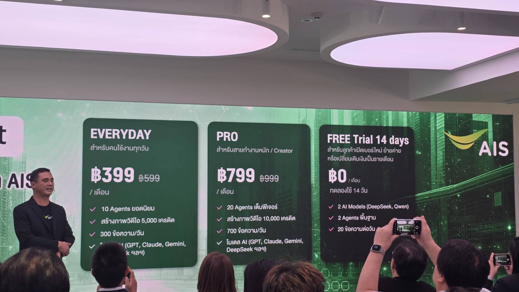 “ทั้งบุคคลและองค์กรเลือกใช้ได้ง่าย เหมาะกับงาน เข้าถึงได้ในราคาที่จับต้องได้ และชำระผ่านบิล AIS เพื่อลดอุปสรรคในการเริ่มต้นใช้งาน โดยเราเชื่อว่า AI ไม่ได้มาแทนที่คน แต่ช่วยยกระดับศักยภาพ เพิ่มโอกาสใหม่ ๆ และเร่งให้ AI ถูกนำไปใช้ได้จริงในชีวิตประจำวันและภาคธุรกิจ เพื่อขับเคลื่อนประเทศไทยสู่เศรษฐกิจดิจิทัลอย่างยั่งยืน”