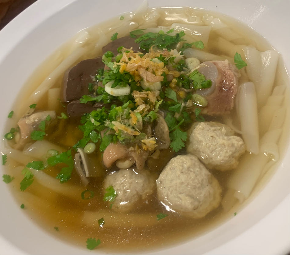 ก๋วยจั๊บรวมมิตร น้ำซุปหวานน้ำต้มกระดูก
