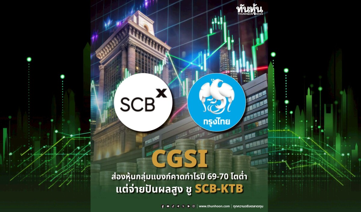 CGSI ส่องหุ้นกลุ่มแบงก์คาดกำไรปี 69-70 โตต่ำ แต่จ่ายปันผลสูง ชู SCB-KTB