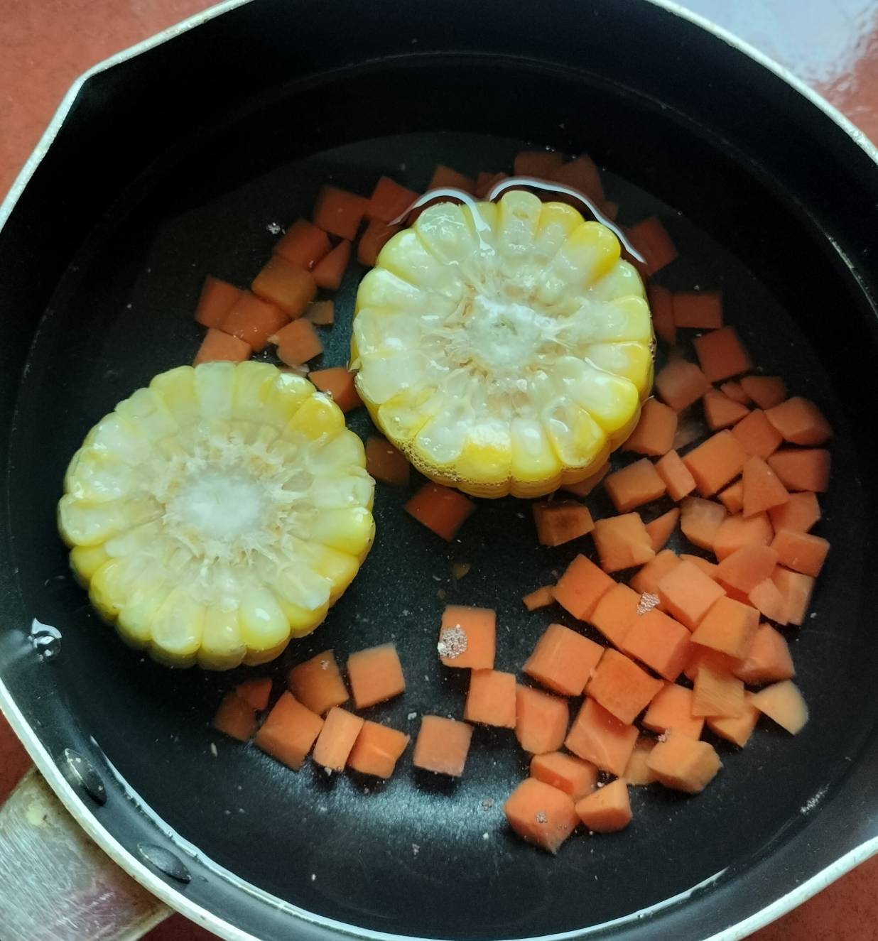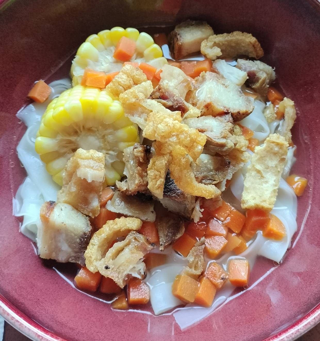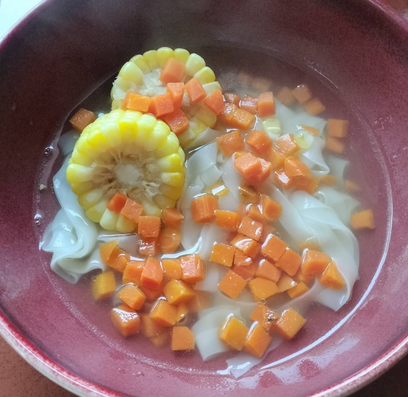 น้ำซุปเดือด ข้าวโพดสุกก็ใส่เส้นลงไป