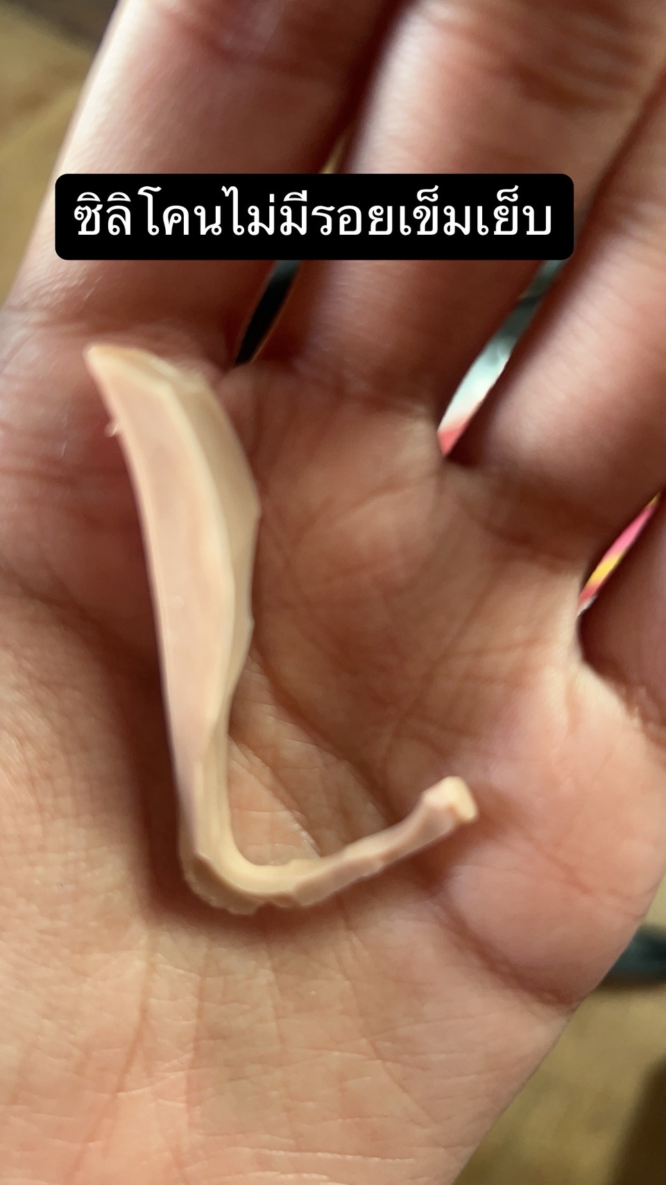 📍ความจริงที่น่าตกใจ (เจ็บตัวฟรี?) ไฮไลท์คือ... ผมมีแผลผ่าตัดที่หลังใบหูจริงครับ (เจ็บตัวไปแล้ว) แต่พอคุณหมอท่านใหม่ผ่าเข้าไปแก้และถอดซิลิโคนออกมา ปรากฏว่า "ไม่พบชิ้นส่วนกระดูกอ่อนหลังหูติดอยู่ที่ปลายซิลิโคนเลยครับ" (ดูรูปประกอบ ซิลิโคนเกลี้ยงมาก)