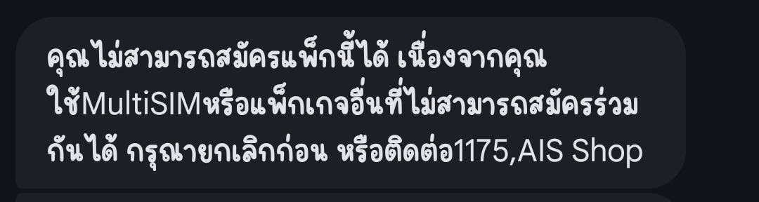 สวัสดีค่ะ พอดีเราเติมแพ็คเสริมเน็ต ais หักเงินผ่านแอพธนาคารแต่พอหักเงินแล้วมีข้อความแจ้งว่าไม่สามารถใช้งานได้ค่ะ