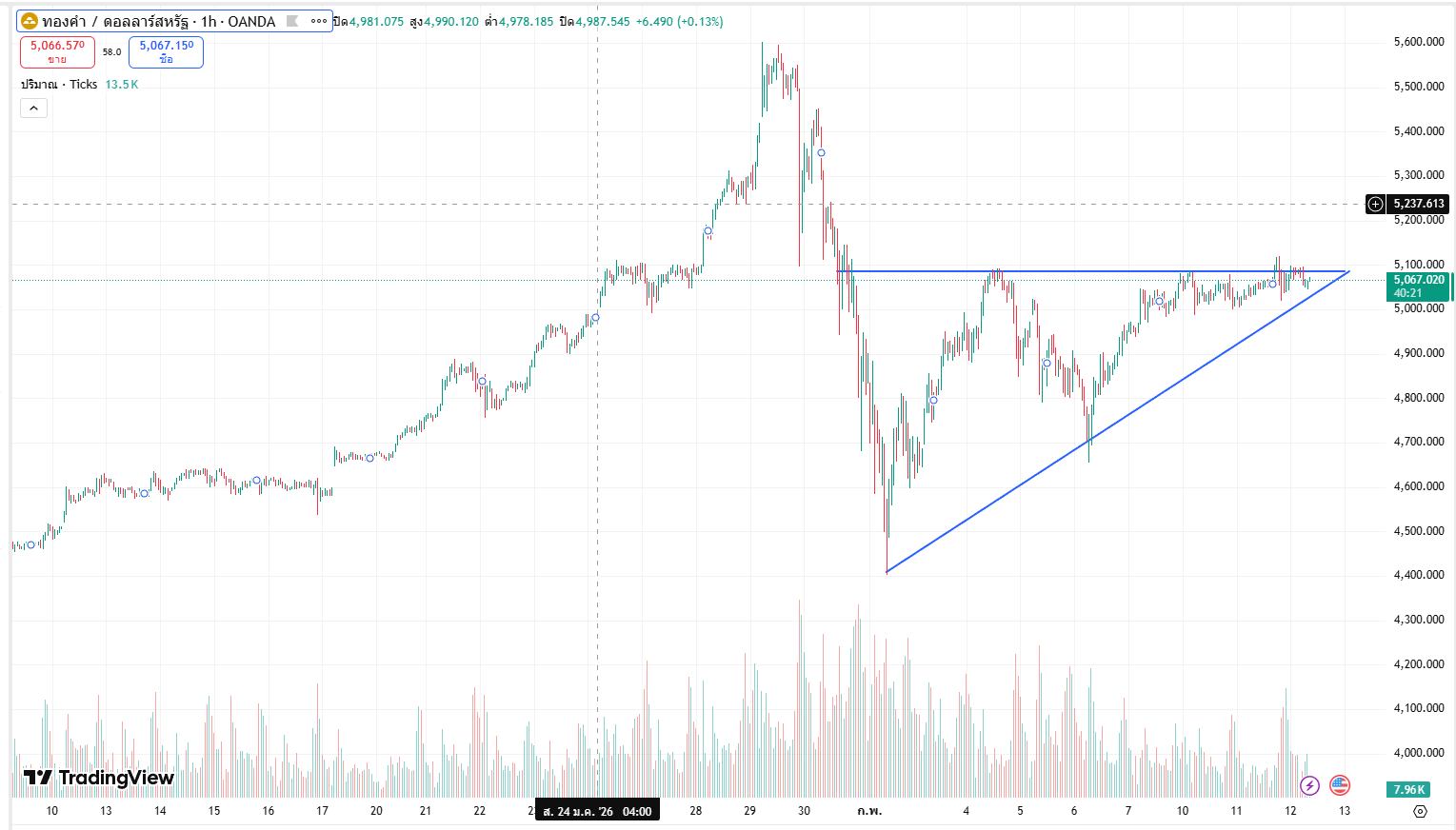 จากที่คาดว่าปริมาณการซื้อขายบางลง แล้วจะค่อย ๆ ถอยลงมาทดสอบ 4400 อีกรอบ ในสัปดาห์นี้ แต่