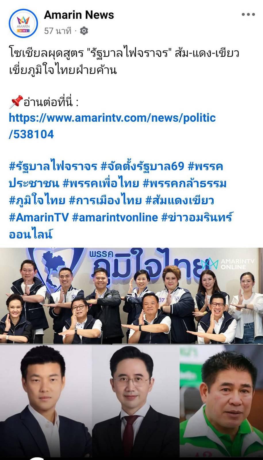 https://www.facebook.com/share/p/1HwzAMV5MS/ สะเทือนวงการการเมือง! สรยุทธ เผยแหล่งข่าวลือหนาหู 'ภูมิใจไทย' เดินเกมทาบ 'พรรคส้ม' ร่วมรัฐบาล หวังดัน 'เสี่ยหนู อนุทิน' นั่งเก้าอี้นายกฯ อีกค