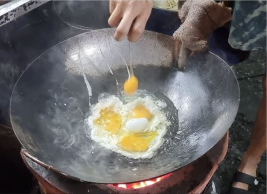 ในเมืองมักจะใช้กระทะเป็นอุปกรณ์หลักในการทอดไข่
