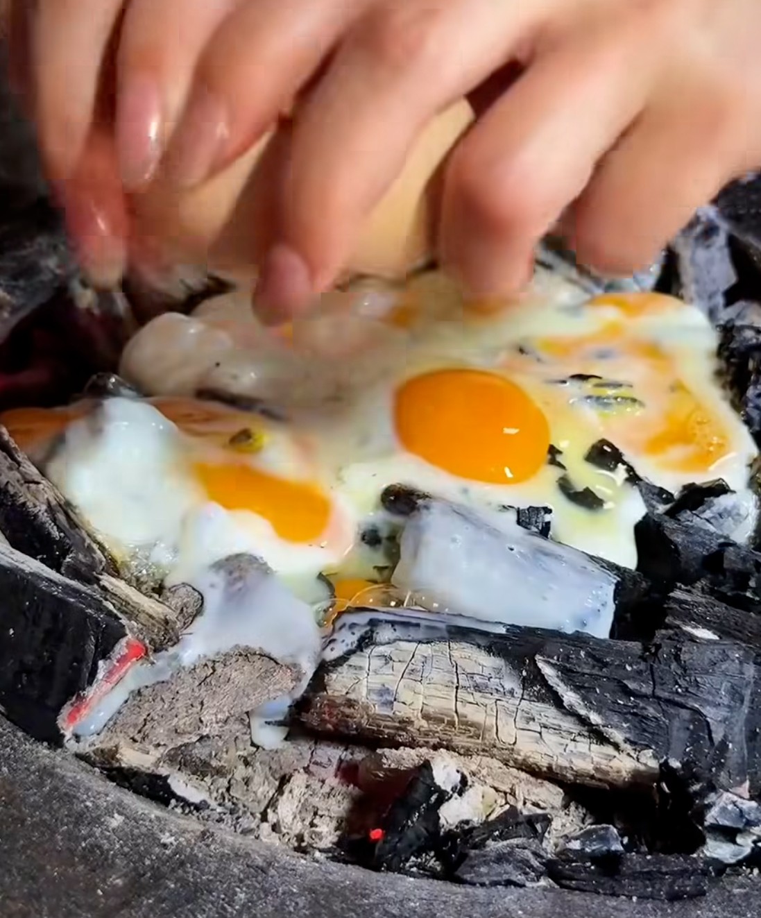 คือการตอกไข่ใส่ลงไปในเตาถ่านโดยตรง รอจนสุกและนำมารับประทาน