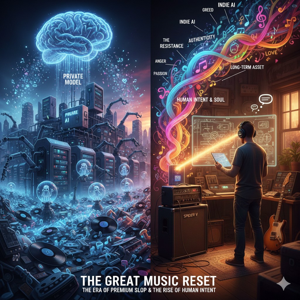 #TheGreatMusicReset #IntellectualDataFarm #HumanWillInMusic #PremiumSlop #IndieAI #SonicSignature #LongTermAsset #AuthenticSincerity #DigitalFeudalism #HighFidelityMediocrity #PrivateModelResistance #HumanMade2026 #TheResistance