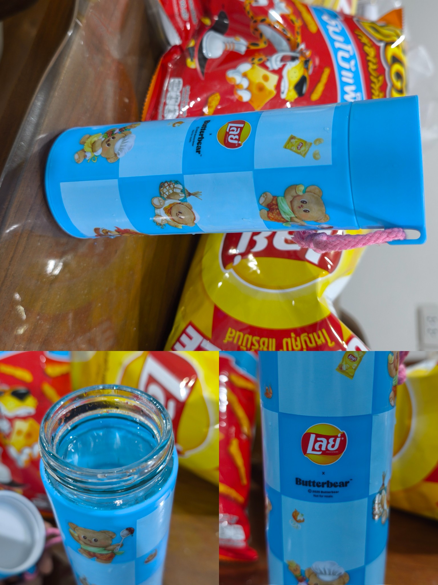 [CR] ขวดแก้วปลอกพลาสติก Butterbear ของแถมจาก Lay's น่าใช้เลย