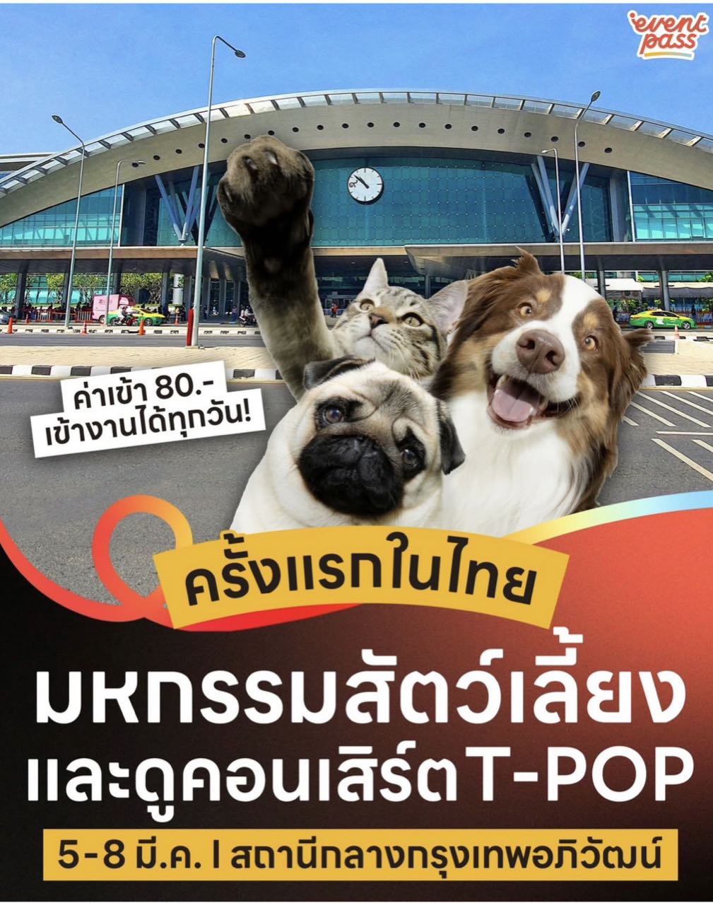 งานนี้ถือเป็นมิติใหม่ที่เป็นการรวมตัวกันครั้งแรกในไทยระหว่าง "มหกรรมสัตว์เลี้ยง" และ "คอนเสิร์ต T-POP" ไว้ในงานเดียวครับ